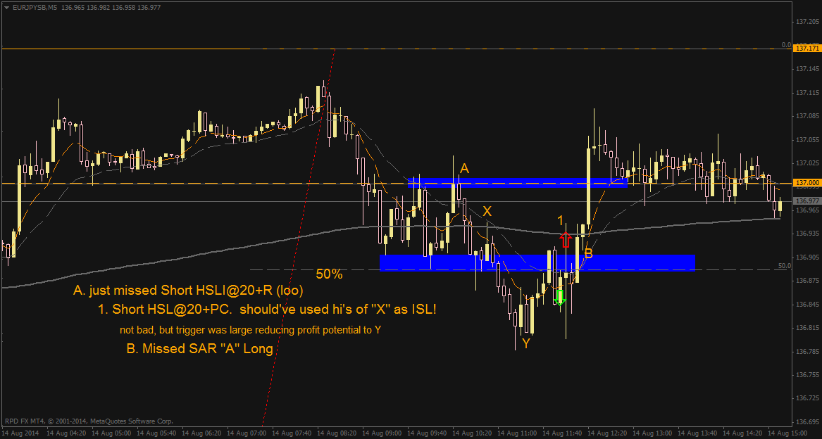 EU Obs: Scared myself out of this. My mindset should have been that this is a high prob long trade and if my ISL was taken out there would be great probability that the next level of S (Y Lo) would be tested making a great SAR. Which is a far more positive attitude than saying "what if" all day!